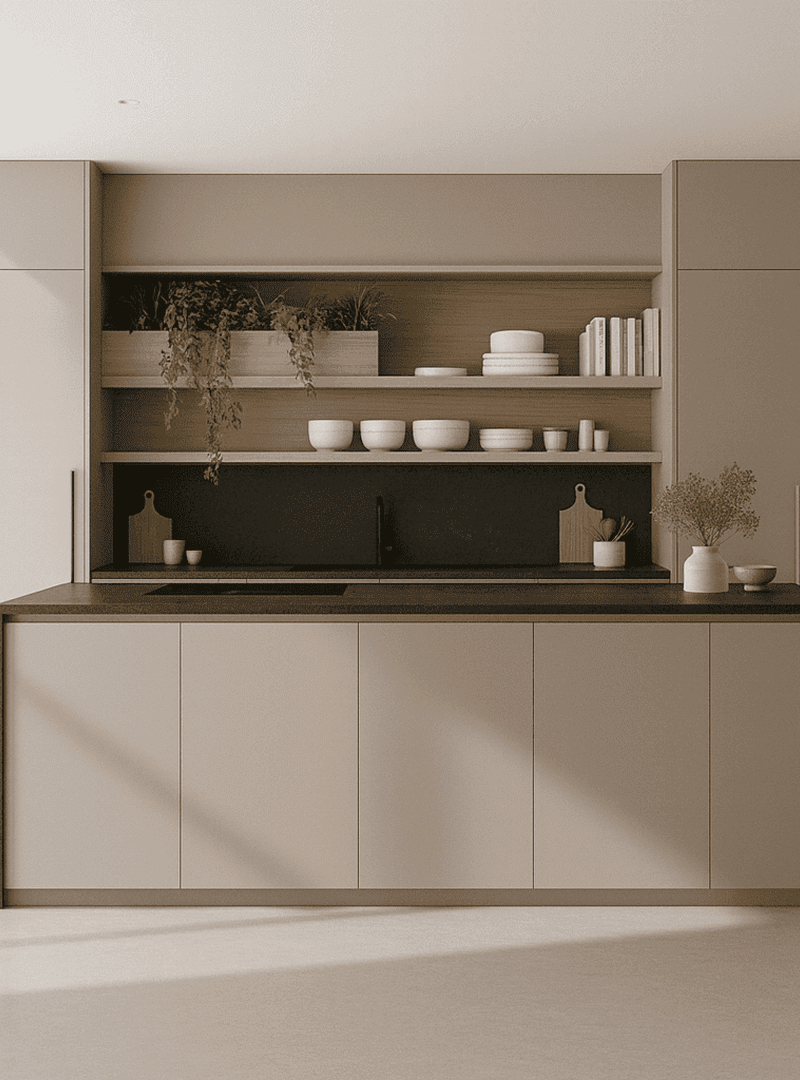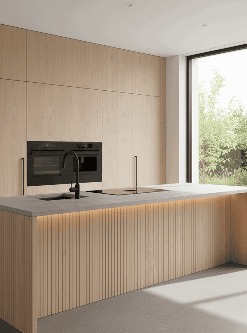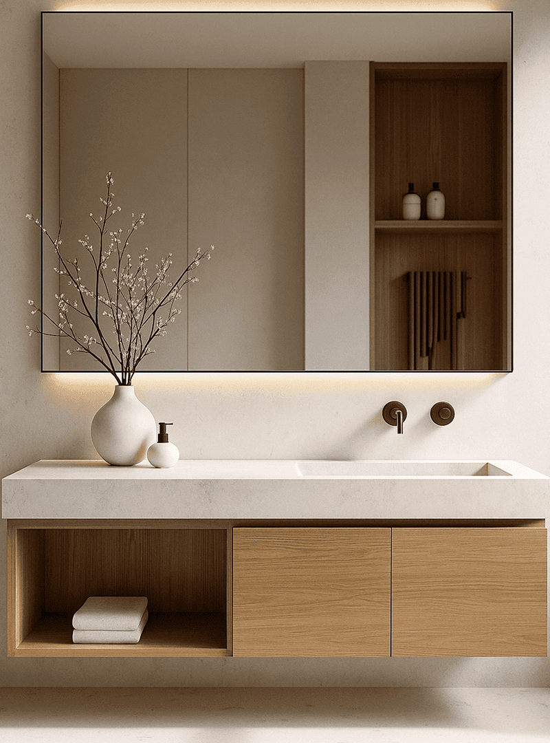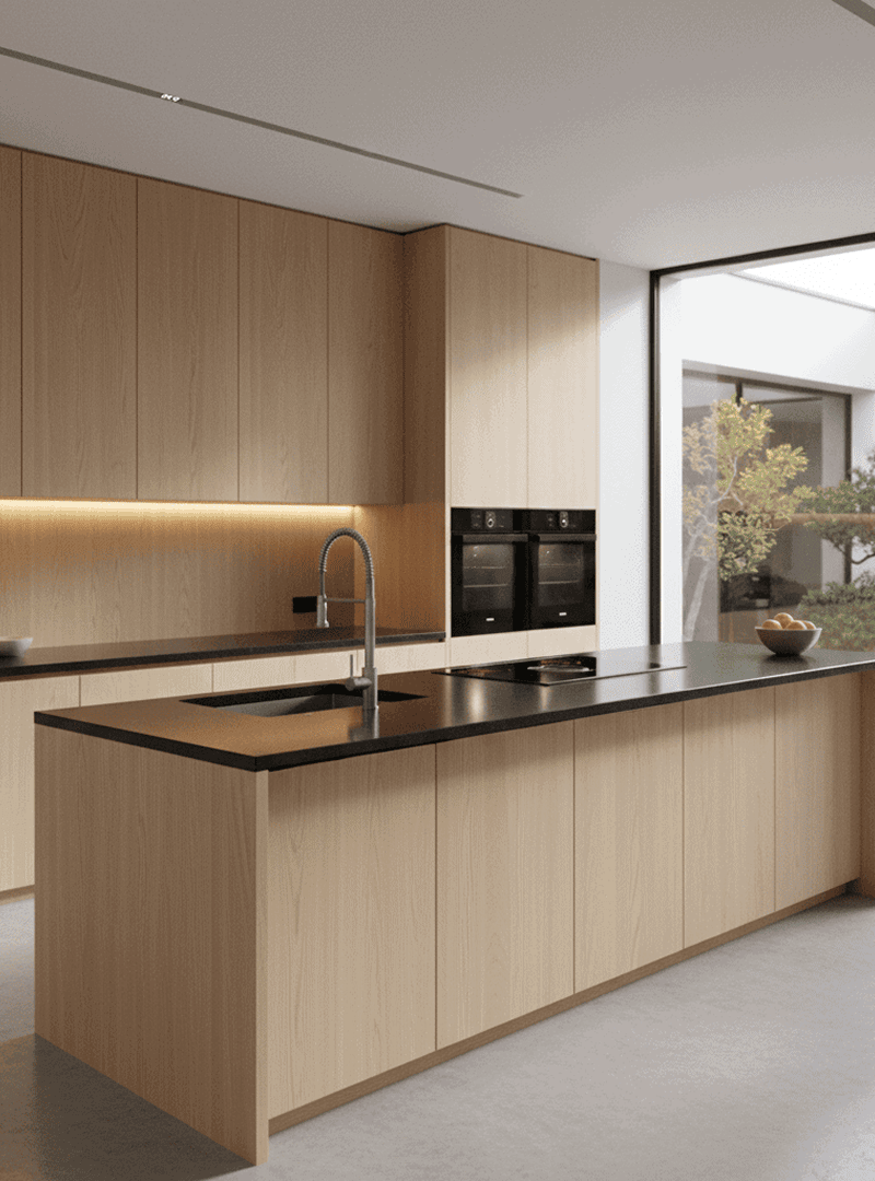 Hölzer und Oberflächen wählen wir mit größter Sorgfalt, abgestimmt auf Funktion und Gefühl. Jede Maserung, jede Struktur trägt Bedeutung und verleiht dem Design Charakter und Tiefe.
