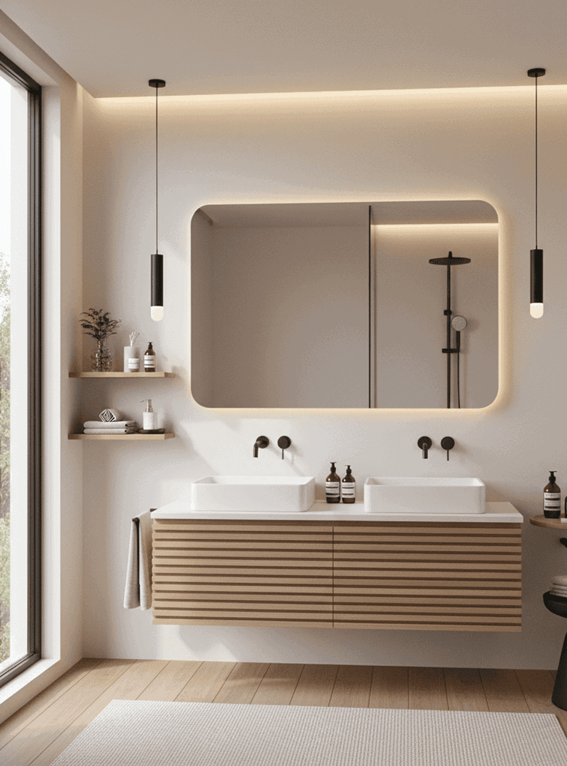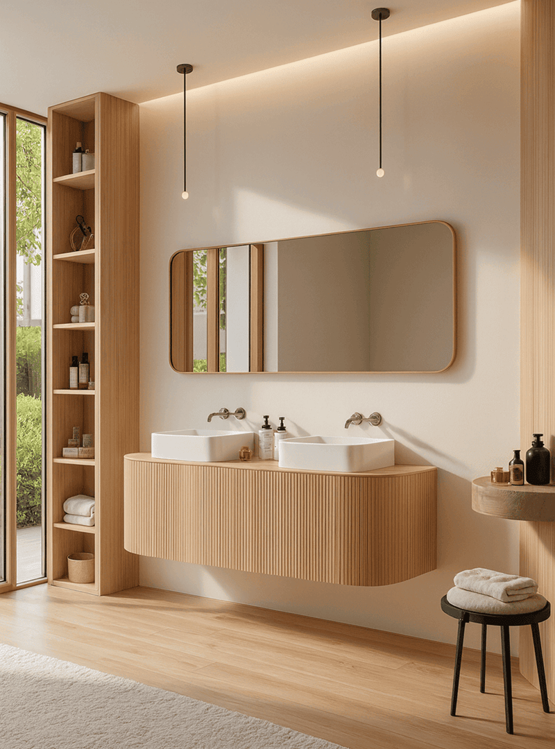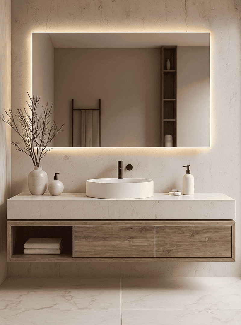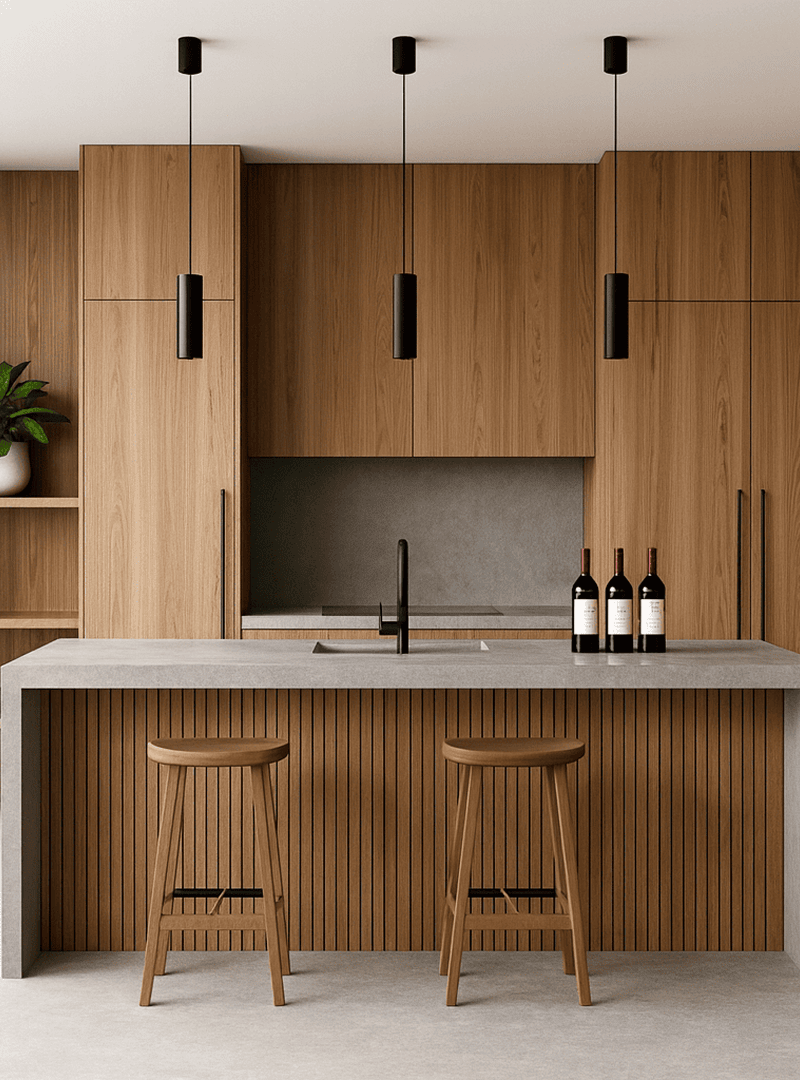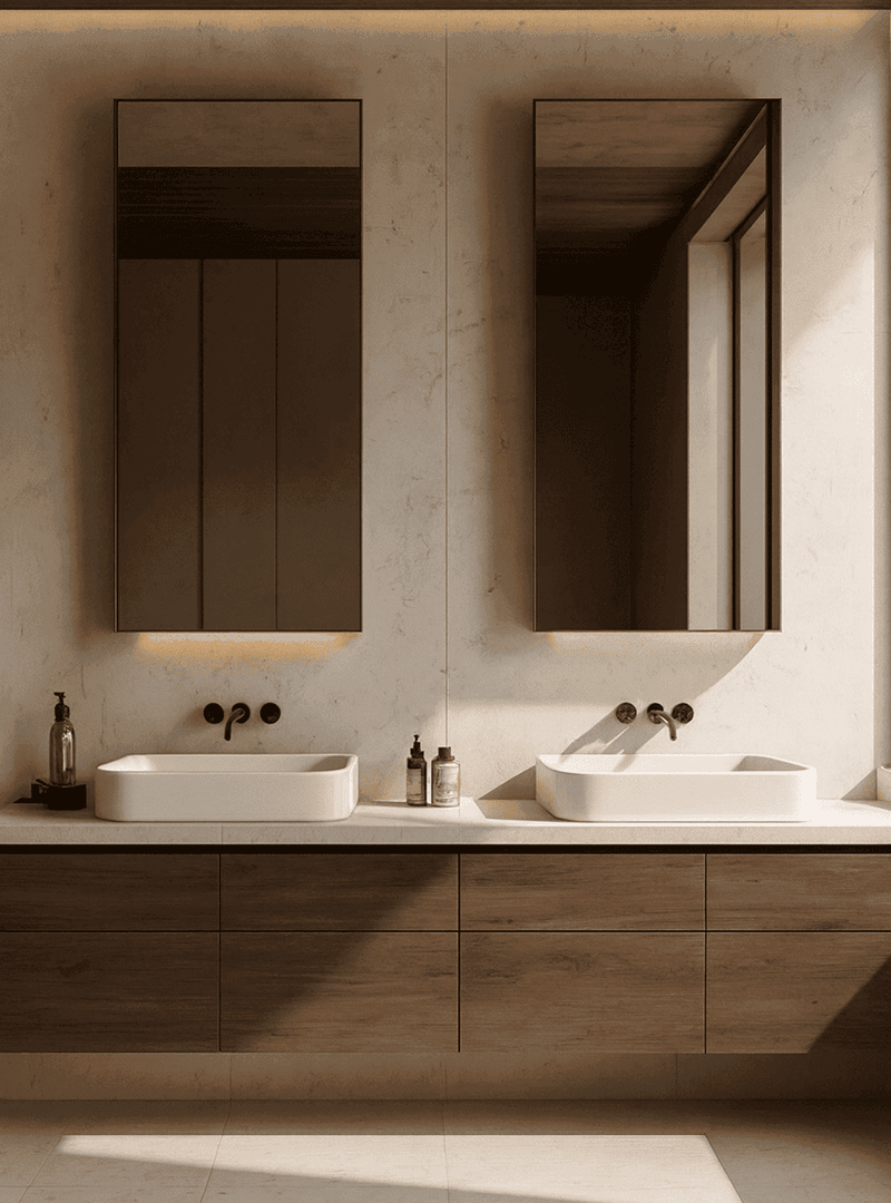 Hölzer und Oberflächen wählen wir mit größter Sorgfalt, abgestimmt auf Funktion und Gefühl. Jede Maserung, jede Struktur trägt Bedeutung und verleiht dem Design Charakter und Tiefe.